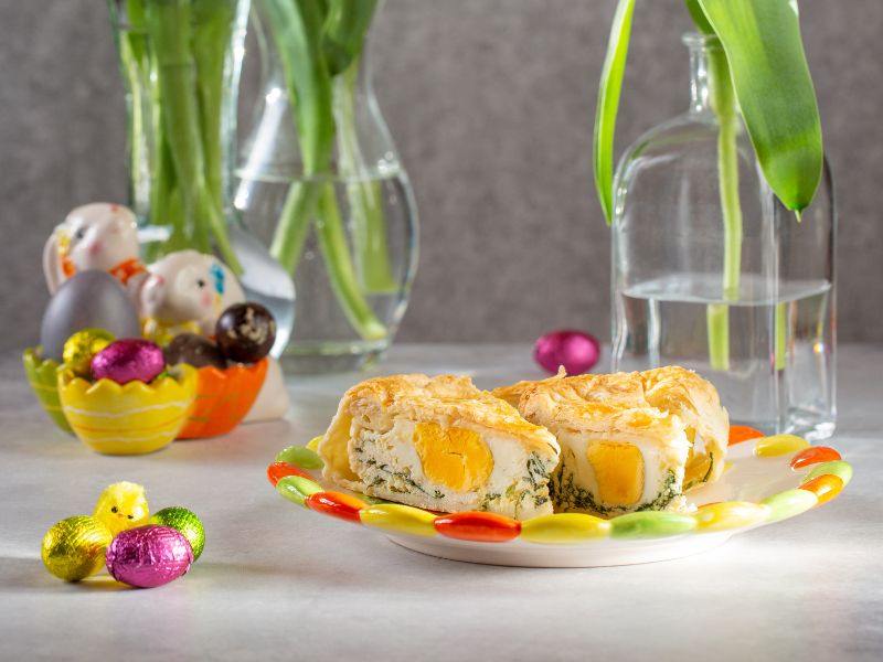 La Torta Pasqualina è perfetta per la tavola di Pasqua e per un picnic il lunedì di Pasquetta, ed è ancora più gustosa nei giorni successivi alla preparazione. Con un’adorabile crosta dorata, un ripieno cremoso e le uova sorprendentemente sode, è un piatto che delizia il palato e gli occhi.