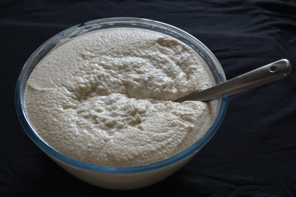 In una ciotola capiente versiamo prima l’acqua, meglio se tiepida. Mi raccomando, non calda altrimenti il lievito muore. Sciogliamo il lievito in acqua, e lasciamolo stare per cinque minuti. Poi aggiungiamo la farina poco alla volta, così da poter dare alla pastella la fluidità che preferiamo. Il consiglio è quello di mettere la stessa dose di acqua e farina ma la consistenza spesso è dettata anche dal tipo di farina e da quanta acqua assorbe. In ultimo aggiungiamo il sale. Copriamo la ciotola contenente la pastella con della pellicola e lasciamo lievitre fino al raddoppio. Quando la pastella sarà lievitata, sarà pronta all’uso.