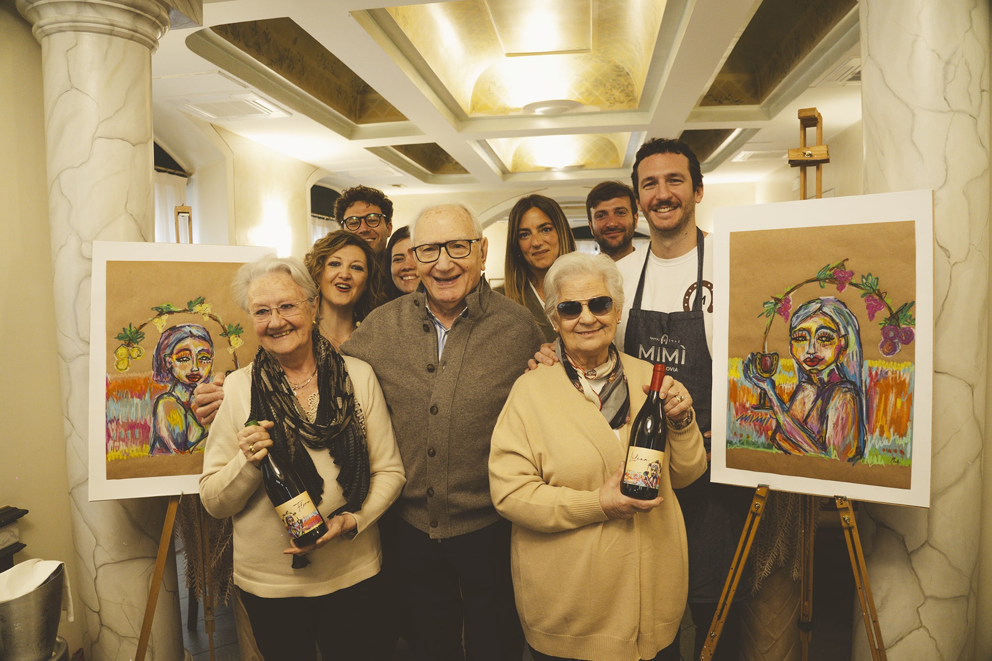 Uno degli elementi che ha reso caratteristico Mimì alla Ferrovia è il buon vino, che, sin dal primo momento, Emilio porta in città dalle sue terre: Lettere e Gragnano. Oggi, per celebrare gli 80 anni di storia, Ida e Salvatore affidano la realizzazione del vino Mimì 80 alle Cantine Astroni, nelle due varianti: Penisola Sorrentina DOP Lettere, un vino vivace di eccezionale qualità e grande tradizione, prodotto in aree limitate della Penisola Sorrentina, ottenuto dall’unificazione di differenti tipologie di uva (Piedirosso, Aglianico, Sciacinoso e altre varietà minori); e Campi Flegrei DOP Falanghina, varietà molto diffusa e rappresentativa della Campania, un vino caratterizzato dalla presenza di sapidità e mineralità, caratteristiche per le quali si distingue dal biotipo beneventano. Nascono così il rosso Lilina e bianco Flora, le mogli di Michele senior e Michele junior, che sono state accanto ai mariti in questa impresa familiare, rendendone possibile il successo, proprio come Ida è stata accanto a Emilio. Le etichette sono disegnate dalla pittrice partenopea Flavia Bracale, appassionata e amica di Mimì.